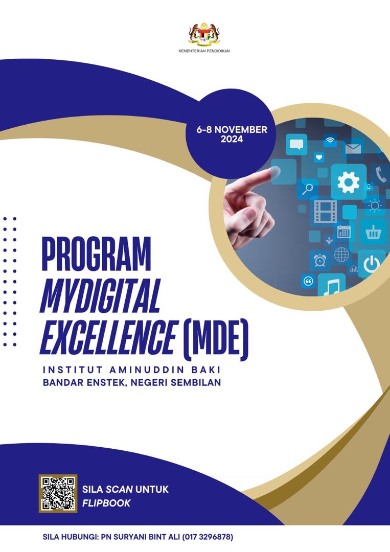 Program MyDigital Excellence (MED) Institut Aminuddin Baki telah dilaksanakan dari 6. hingga 8 November 2024. Institut Aminuddin Baki (IAB) ialah peneraju Teras 3 Dasar Pendidikan Digital, yang berfokus kepada Budaya Kepimpinan Digital Berwawasan. Bagi melaksanakan tanggungjawab ini, IAB memperkenalkan Program MyDigital Excellence yang bertujuan untuk mengiktiraf pencapaian para peserta MyDigital Trainers (MDT).